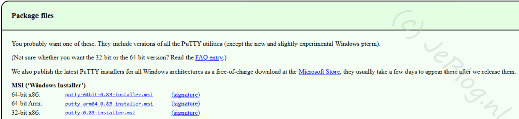 Je komt nu op een nieuwe website terecht (www.chiark.greenend.org.uk) en hier klik je onder de kop ‘Package files’ op de juiste msi die geschikt is voor het besturingssysteem van je eigen machine. In de meeste gevallen zal dat de versie ’64-bit x86′ zijn.
