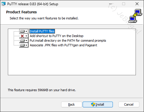De geselecteerde opties zijn voldoende tenzij je graag een snelkoppeling op je bureaublad wil, zet dan de optie ‘Add shortcut to PuTTY on the Desktop’ aan.