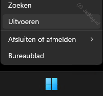 Klik met rechts op de Windows start knop en kies dan voor ‘Uitvoeren’.