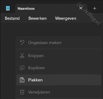Klik met rechts in het scherm en kies voor ‘Plakken’.