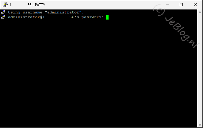 Typ het commando ‘exit’ en druk op de ENTER toets. Hiermee sluiten we de SSH sessie en wordt ook PuTTY automatisch afgesloten.