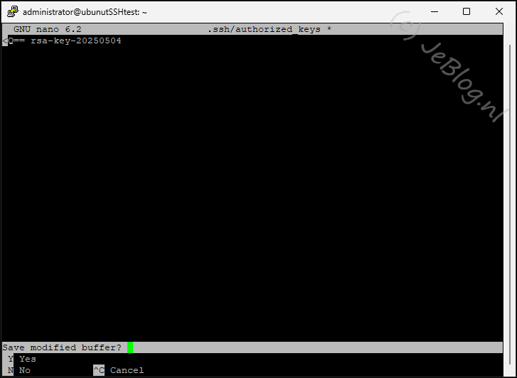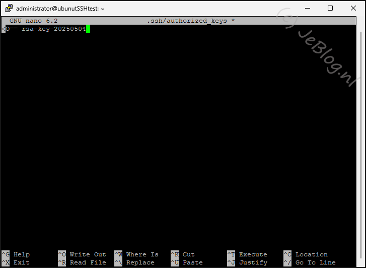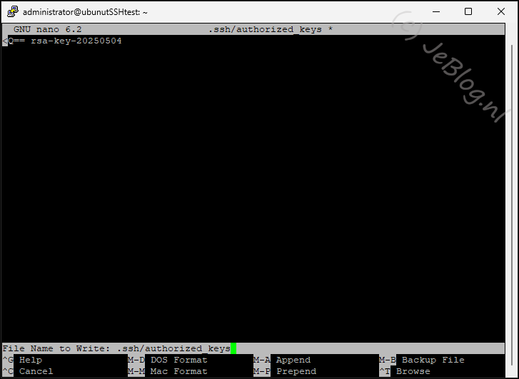 Nu gaan we het bestand openen waar we de publieke sleutel in gaan zetten voor deze gebruiker.